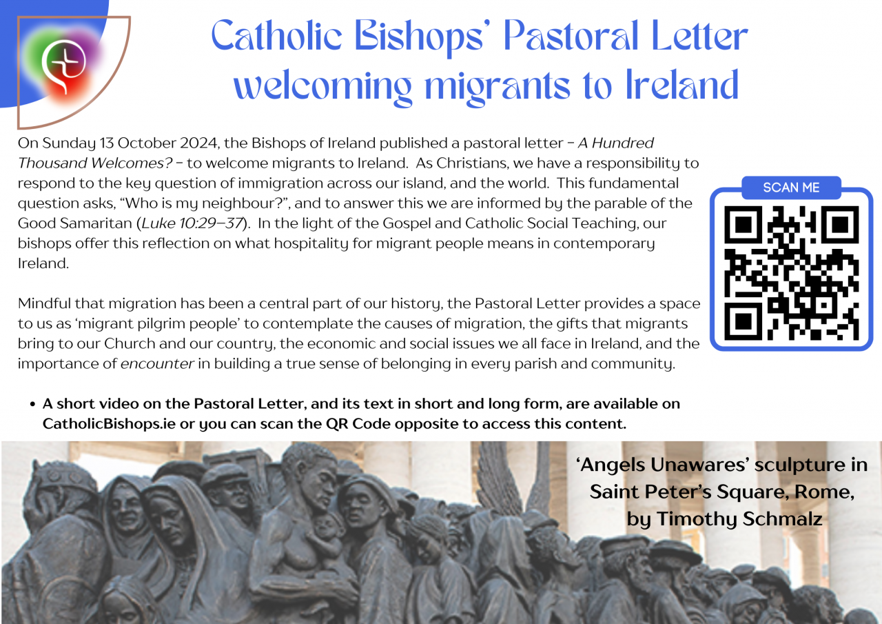 May we always welcome and advocate for migrants. In doing so, we fulfil our shared role as a "migrant pilgrim people," continuing the Irish tradition of openness, encounter, and hospitality, and bearing witness to God's eternal love.