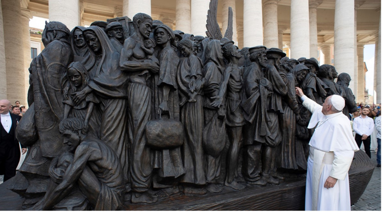 Front page caption Pope Francis with the sculpture 'Angels Unawares' by Timothy Schmalz, which was installed in September 2019 in Saint Peter's Square, Vatican City, to mark the 105th World Migrant and Refugee Day. Permission for publication has been granted to the Catholic Communications Office by Timothy Schmalz.