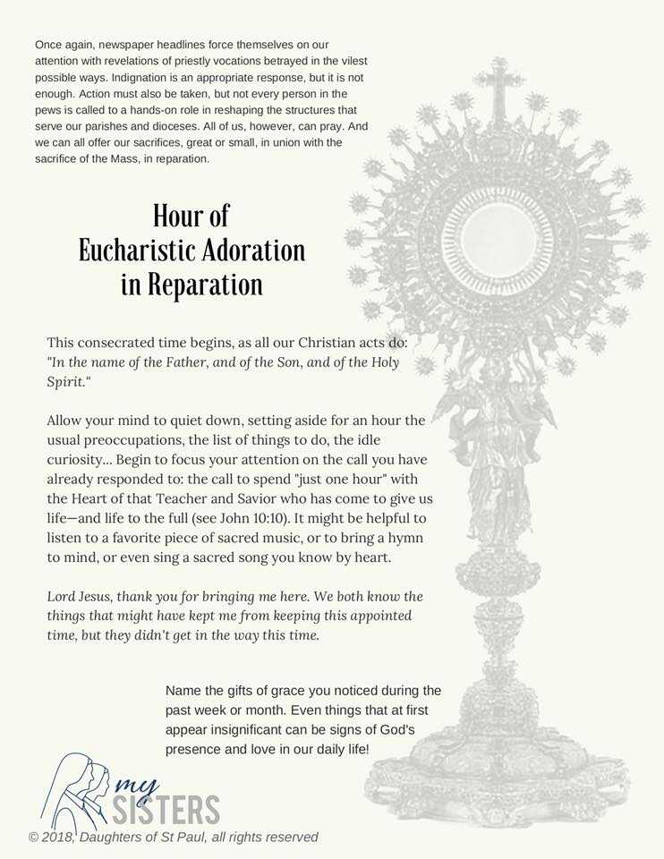 Thursday 6th September and every first Thursday of the month: An hour of reparation and atonement for the crimes committed, for justice and healing and in solidarity with all victims and survivors...