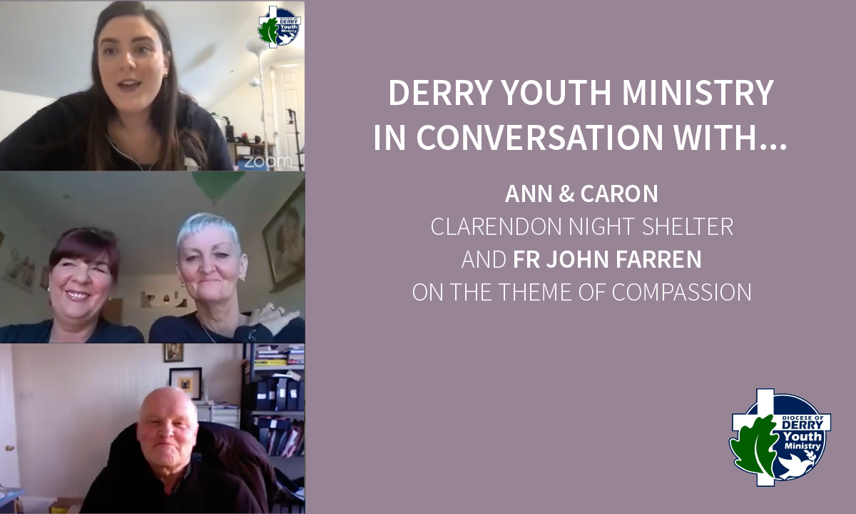 The Derry Youth Ministry team discuss the theme of Compassion with Ann and Caron from Claredon Night Shelter, Derry and Fr John Farren, Parish of Iskaheen, Inishowen, Co. Donegal.