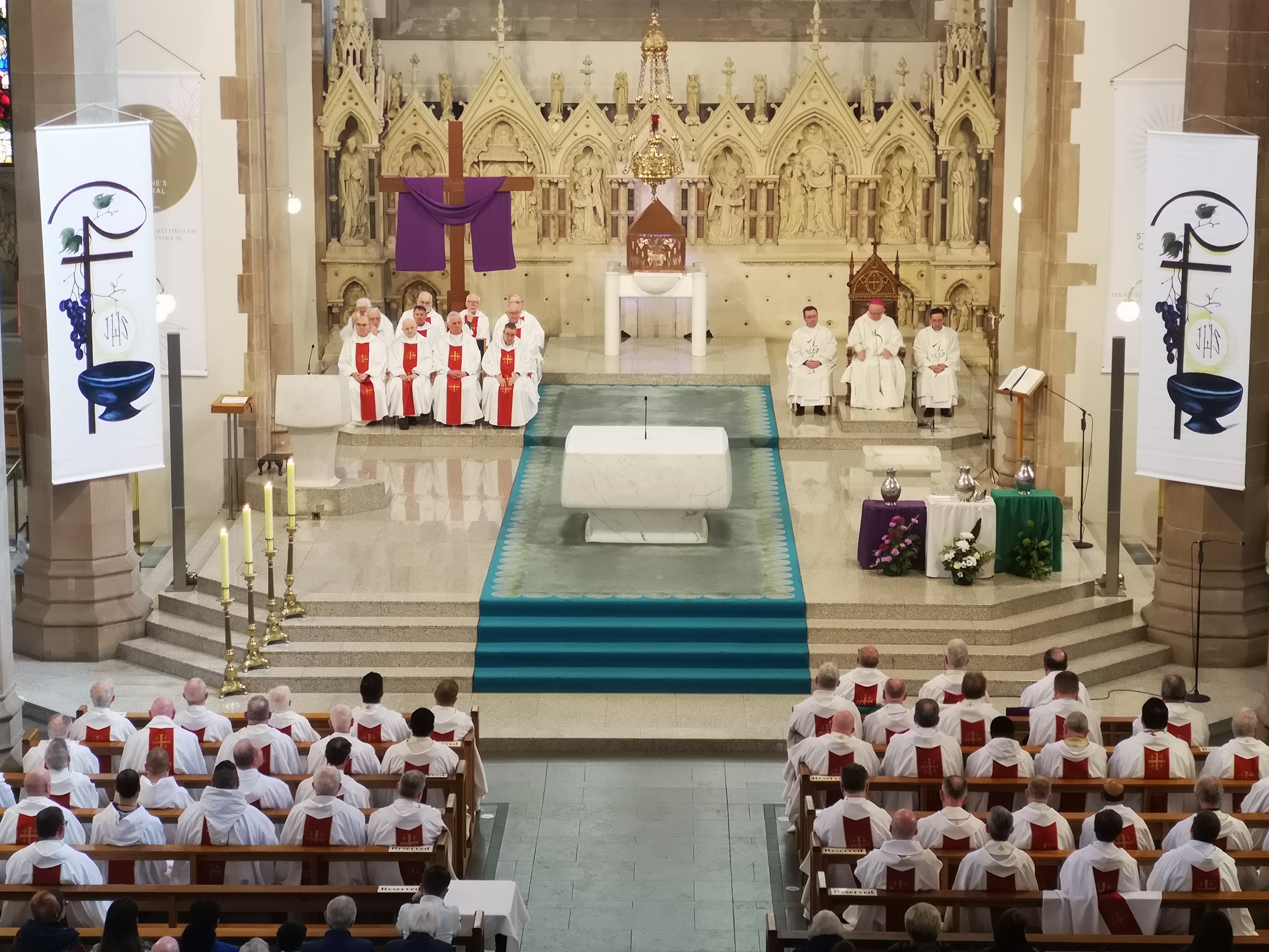 This Chrism Mass presents us every year with the start of Jesus' ministry. He returns from his temptations and says in Nazara that he has been anointed with the Holy Spirit to bring good news to the poor. In the temptations, the devil had urged him to take easy ways forward that would not cost him too much. But he is clear – he has come to take the road less travelled and bring healing and hope to those most in need of care and belonging, whatever the cost.