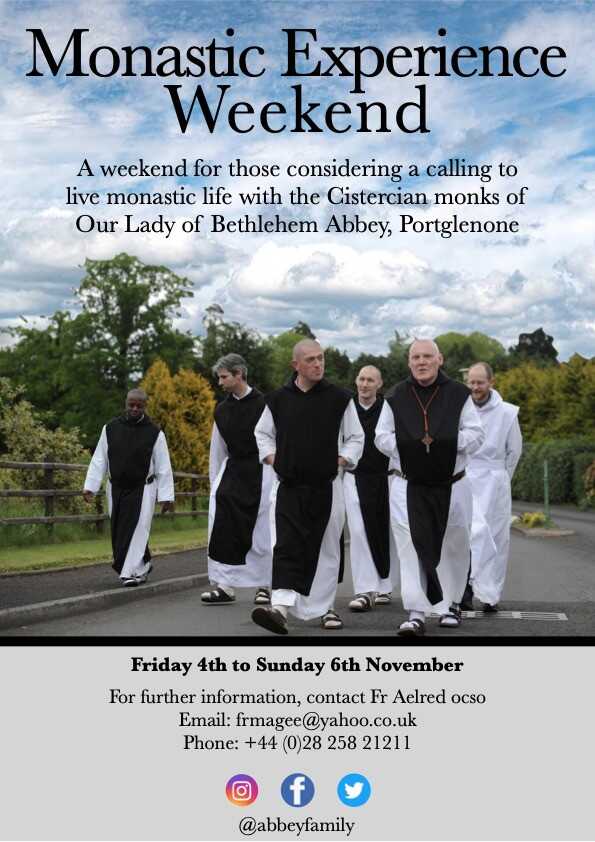 A weekend for those considering a calling to live a monastic life with the Cistercian monks of Our Lady of Bethleham Abbey, Portglenone, Co Antrim.