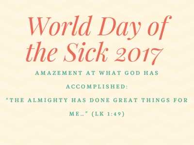 Pope Francis entitled his message for the 2017 celebration of the World Day of the Sick "Amazement at what God has accomplished: 'The Almighty has done great things for me…' (Lk 1:49)".