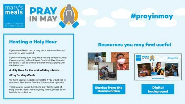 Throughout the month of May 2021 individuals, churches and faith groups are invited to pray with Mary's Meals, that their work continues to flourish and grow, and that more children throughout the world will see their lives transformed by receiving a daily meal in a place of education.