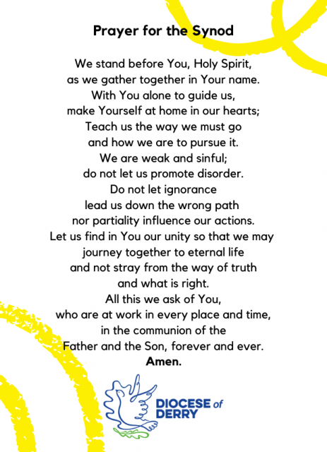 As we embrace this Synodal Process, this prayer invites the Holy Spirit to be at work in us so that we may be a community and a people of grace. For the Synodal journey from 2021 to 2023, we propose to the following simplified version, so that any group or liturgical assembly can pray it more easily.