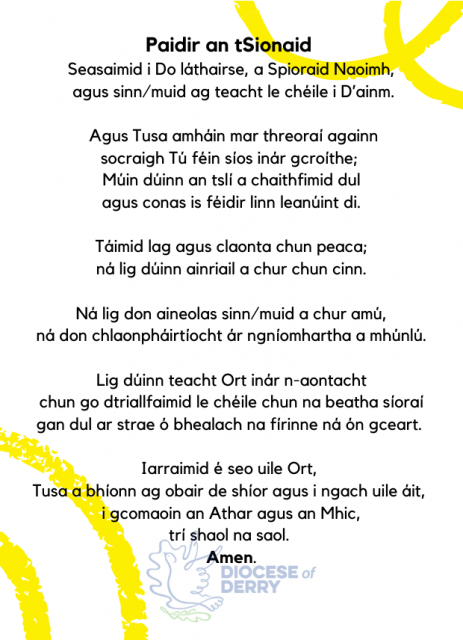 agus sinn/muid ag teacht le chéile i D'ainm.