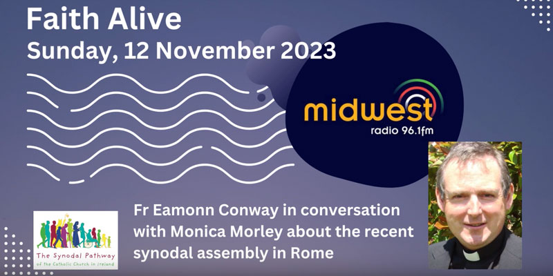 Rev Professor Eamonn Conway speaks with Monica Morley on her Midwest Radio show "Faith Alive" on 12 November 2023. Eamonn speaks about his experience as a theologian and expert facilitator during the first session of the Universal Synod, which was held in Rome during October 2023
