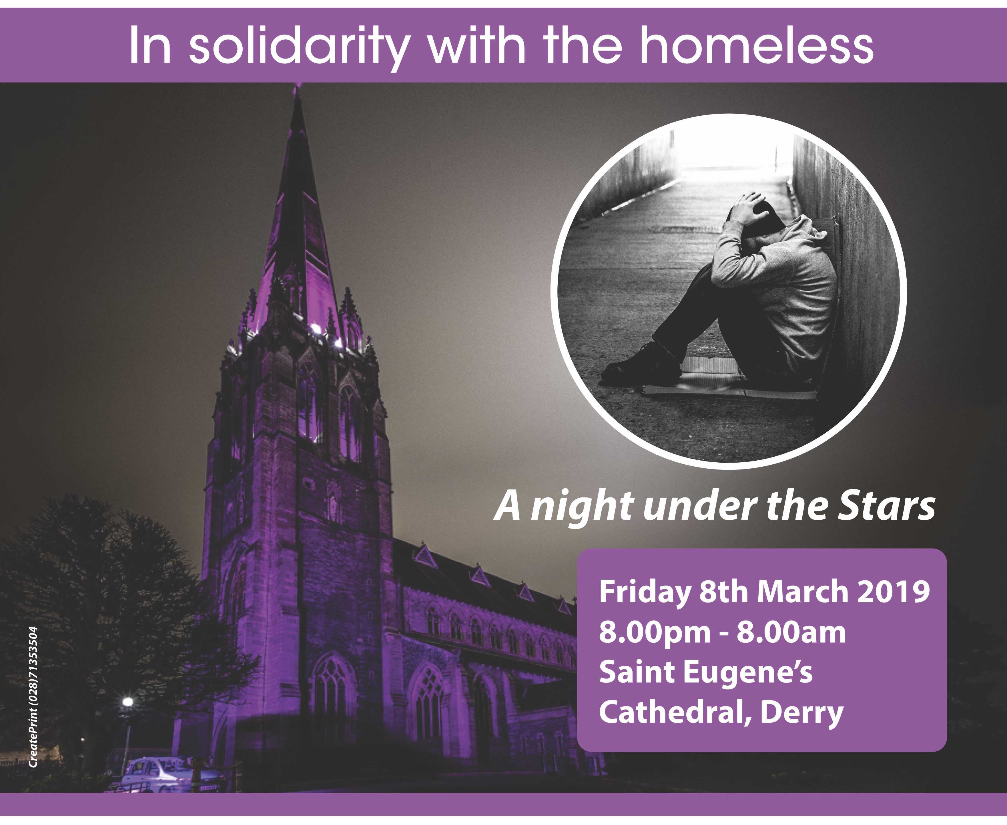 On Friday 8th March, the Derry Diocese will be running an All-night Vigil in Saint Eugene's Cathedral, Derry from 8pm to 8am. This event is in solidarity with the homeless in our community and will raise funds for 4 local charities who work with the homeless. Young people are invited to Stay Awake for at least some of the night and to stay outside for 1 hour during the night.